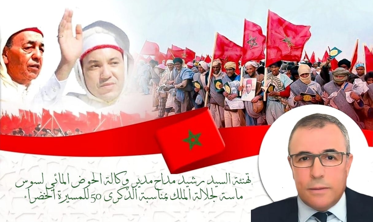 تهنئة السيد رشيد مداح مدير وكالة الحوض المائي لسوس ماسة لجلالة الملك بمناسبة الذكرى 50 للمسيرة الخضراء