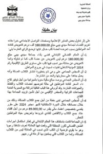 وأشار البيان إلى أن المجلس الجماعي واعٍ بخطورة انتشار الكلاب الضالة، ويعمل على الحد منها من خلال توقيع اتفاقيات شراكة لتوفير اللقاحات، كما صادق مؤخراً على تخصيص اعتماد مالي بقيمة 89.000 درهم لاقتناء معدات لجمع هذه الكلاب وتقليص خطرها على الساكنة.