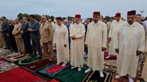 ترأس والي جهة سوس ماسة السيد سعيد امزازي صباح اليوم السبت 07 يونيو 2025 الجاري مراسيم صلاة عيد الأضحى المبارك بمصلى الرسمي لاحشاش باكادير مرفوقا بالكاتب العام للعمالة، و الكاتب العام رئيس قسم الشؤون الداخلية و رئيس المجلس العلمي الجهوي وعدد من الشخصيات المدنية والعسكرية وبعض المنتخبين و رجال السلطة، وأعيان المدينة، في أجواء روحانية يستشعر فيها المرء بعظمة العبادة وسموها.