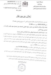 لكن المستجد الخطير الذي كشفته وثيقة رسمية صادرة عن المحكمة التجارية بأكادير بتاريخ 28 أكتوبر 2025، يقلب الموازين رأساً على عقب، إذ تؤكد الوثيقة أن الجمعية المعنية توجد في نزاع قضائي متقدم مع شركة البناء “تسلالات للإنشاء”، أدى إلى الحجز على عقار “دار الموظف” بحي السلام بمدينة إنزكان، وقرار بيعه بالمزاد العلني بقيمة افتتاحية تبلغ 24.305.230,48 درهم.