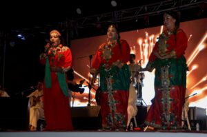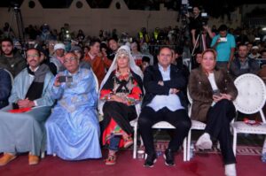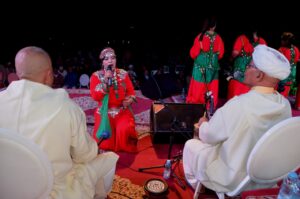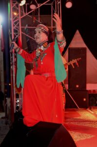 وخلال الحفل تألقت أيقونة الفن الأمازيغي، الفنانة القديرة فاطمة شاهو تبعمرانت، التي أطلت بزي أمازيغي تقليدي مميز من اللون الأحمر المزين بالحلي الفضية والمرجان، في لوحة بصرية آسرة اختزلت عبق التراث ورمزية الهوية المغربية الأمازيغية، وقد أتحفت تبعمرانت الجمهور بمجموعة من أغانيها الخالدة، التي تردد صداها بين الحاضرين، فكان التفاعل كبيرًا والعاطفة الوطنية جياشة.