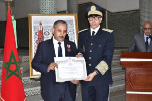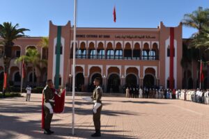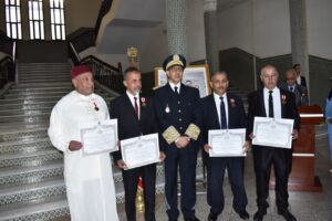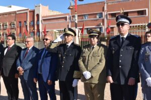 واستهلت هذه الاحتفالات بمقر العمالة حيت تراس عامل الاقليم السيد محمد سالم الصبتي مراسيم تحية العلم الوطني، كما قام بتوشيح عدد من المنعم عليهم من موظفي قطاع الداخلية بأوسمة ملكية شريفة