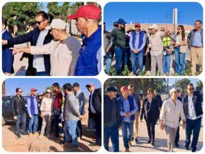 كما تفقد الوالي سير عمليات التشجير وإعادة التهيئة بشارع العيون، الذي يعرف دينامية مهمة على مستوى جنباته، إلى جانب عدد من الأوراش الأخرى المتعلقة بالنظافة وتوسعة المساحات العمومية، خصوصًا بمدخل تيكوين وبمحيط وادي أزرارك على الطريق المداري المؤدي إلى الملعب.