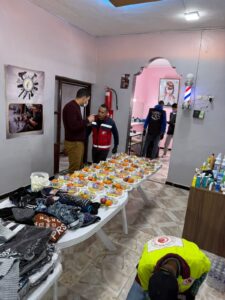 الدعم العيني والغذائي: توزيع وجبات غذائية متوازنة وفواكه ومياه معدنية، بالإضافة إلى ملابس وأغطية شتوية لمواجهة موجة البرد.