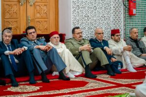 وشهدت المناسبة تنظيم حفل ديني تخللته تلاوة آيات بينات من الذكر الحكيم، إلى جانب إلقاء درس ديني تناول فضائل ليلة القدر وما تحمله من معاني التقرب إلى الله تعالى والتضرع إليه بالدعاء والاستغفار، في أجواء روحانية مهيبة عكست عمق ارتباط المغاربة بثوابتهم الدينية وقيمهم الروحية.