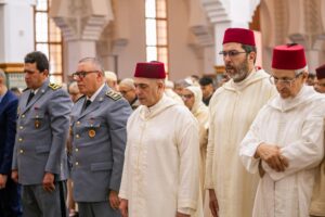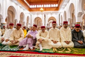 وفي ختام هذه الأجواء الإيمانية، رفع الإمام والمصلون أكف الضراعة إلى العلي القدير، سائلين أن يحفظ أمير المؤمنين جلالة الملك محمد السادس، وأن يمده بموفور الصحة والعافية، وأن يقر عينه بولي عهده الأمير مولاي الحسن، وأن يشد أزره بشقيقه الأمير مولاي رشيد، وسائر أفراد الأسرة الملكية الشريفة.
