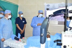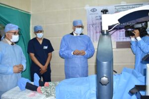 حل عامل اقليم اشتوكة ايت باها السيد محمد سالم الصبتي صباح اليوم الثلاثاء بالمستشفى الاقليمي المختار السوسي للوقوف على مجريات الحملة الطبية الجراحية المخصصة لعلاج المياه البيضاء (الجلالة) والمستمرة إلى غاية 30 من هذا الشهر.